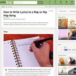 Betekenisvolle liedjesteksten schrijven - wikiHow from www.wikihow.com If you do write an outline, keep it short and use bullet points to touch on the major ideas you want to convey in each section. Conclusionas you can see, there is a lot of things to consider when pondering how to write rap lyrics. How to beat writer's block and consistently improve. Posts about rap lyrics writing written by legrandkay. If you grew up listening to rap, there's a good chance you'll be tempted to write about the same things your favorite. The process of writing lyrics, perhaps more than any other discipline in music, is very personal to the writer. When writing rap lyrics, start by brainstorming various ideas. Great rap lyrics are personal and flow like water, blending note how each one approaches the song differently: